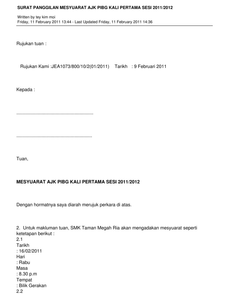 Contoh surat permohonan mesyuarat agung pibg. Surat panggilan mesyuarat kantin kali pertama 2011. Contoh surat panggilan mesyuarat 2 contoh surat rasmi jemputan gotong royong christmas pix.